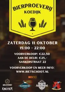 Op zaterdag 11 oktober verandert Ontmoetingscentrum De Rietschoot in een walhalla voor liefhebbers van speciaalbier. De 4e Bierproeverij Koedijk serveert niet alleen mooie bieren, maar ook verhalen: over het brouwproces, ingrediënten en de lokale geschiedenis achter het etiket. Proeven doe je samen — of je nu doorgewinterde hophead bent of nieuwsgierige starter.