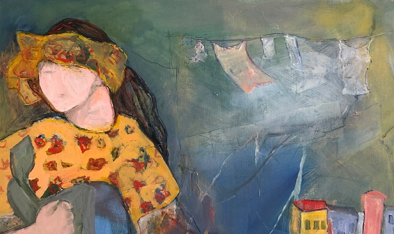 De kunstuitleen heeft drie schilderijen van José van Dijk in de collectie opgenomen. Zij geeft zelf aan dat zij zich in dit werk heeft laten inspireren door ‘Under Milkwood’ van de Welshe dichter / prozaïst Dylan Thomas (1914-1953). Het gaat hierbij niet om een scènisch correcte weergave van levensechte situaties in het fictieve plaats Llareggub (oftewel Bugger All, allemaal klootzakken). Thomas schreef ‘Under Milkwood’ oorspronkelijk als een stemmenspel voor radio. Het draait allemaal om het leven-uit-een-dag veel dorpsbewoners. Een verteller nodigt het gehoor uit te luisteren naar de dromen en intiemste gedachten van de inwoners. Van Dijk verbeeldt deze personages; zij geeft haar interpretatie en analyse van personen / elementen in het oorspronkelijke werk.