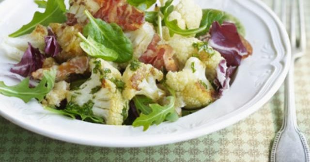 Salade met geroosterde bloemkool en pancetta